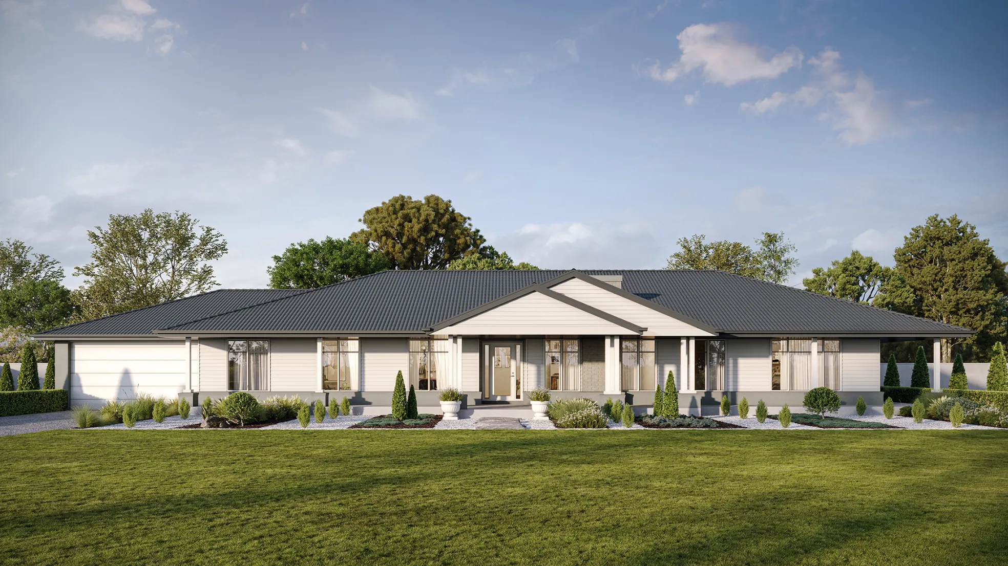 Explore the Kuranda 45 with 4 bedrooms, 2 living and 2 bathroom, designed for a 31m+ block single-storey home. Upon entering, you'll be greeted by an expansive living room that seamlessly connects to the dining area, providing an ideal space for family gatherings and entertaining guests. Large windows flood the area with natural light, creating a warm and inviting atmosphere. Step outside to a beautifully landscaped backyard, perfect for children to play and for hosting outdoor activities. The covered patio extends your living space, offering a serene spot for relaxation and outdoor dining. The master suite offers a tranquil retreat with a luxurious en-suite bathroom and a walk-in closet. The additional bedrooms are designed with comfort in mind, featuring ample storage and easy access to a shared bathroom.