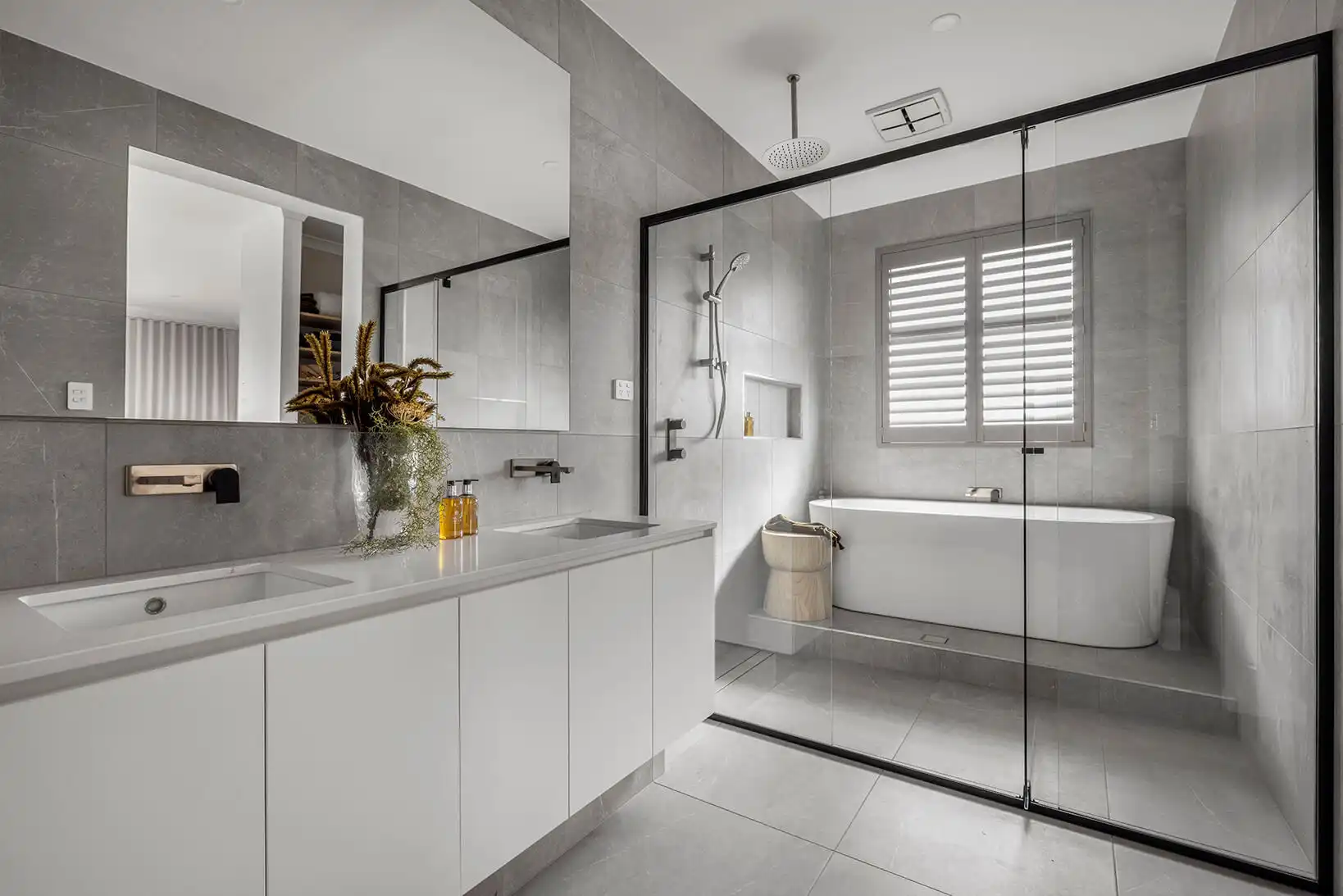 a. Review your builder’s standard inclusions: Items such as basins, bathtubs, showers, toilets and tapware tend to be included in the home’s base price. But bathrooms and ensuites are also rooms where customers look to incorporate upgraded features such as semi frameless shower screens, freestanding baths, double vanities or feature tiles.
