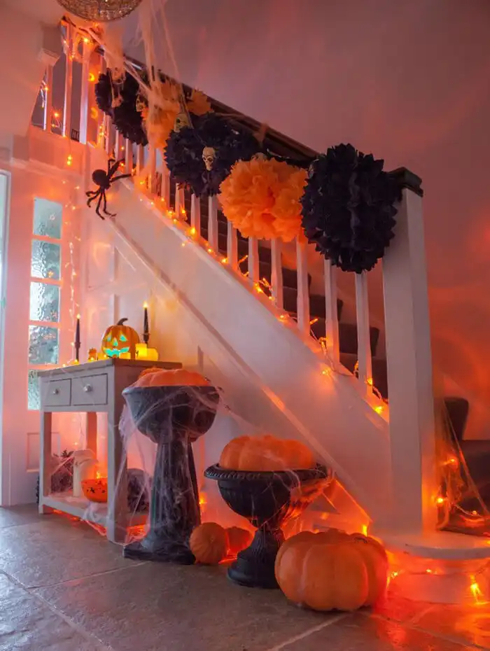 Continue your brightly coloured streamers throughout the kitchen and into the family area. Don’t forget more pumpkins and spooky lanterns.