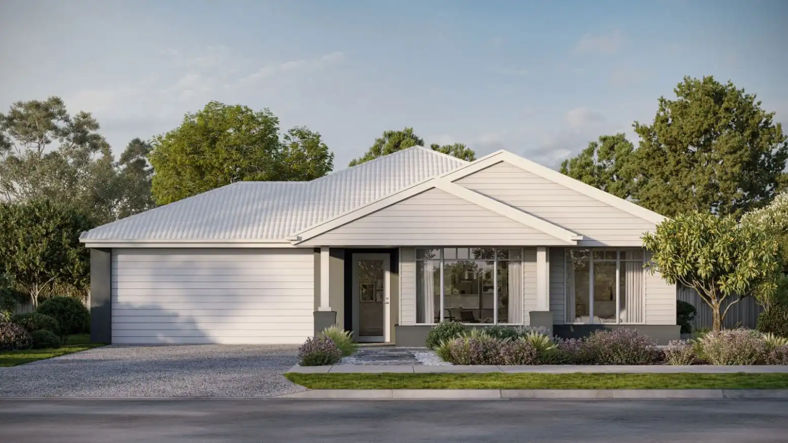 If you’re a fan of the more coastal-meets-cottage look, start exploring our QLD Forrest, NSW Hampton, SA Hermosa or VIC Nash facades. Our Moreton 23 display on the Coomera Foreshore features the Forrest facade and creates charm and character with Monier Concrete roof tiles in Babylon and weatherboards and render from Haymes Paint matched to COLORBOND® steel Shale Grey and Surfmist.