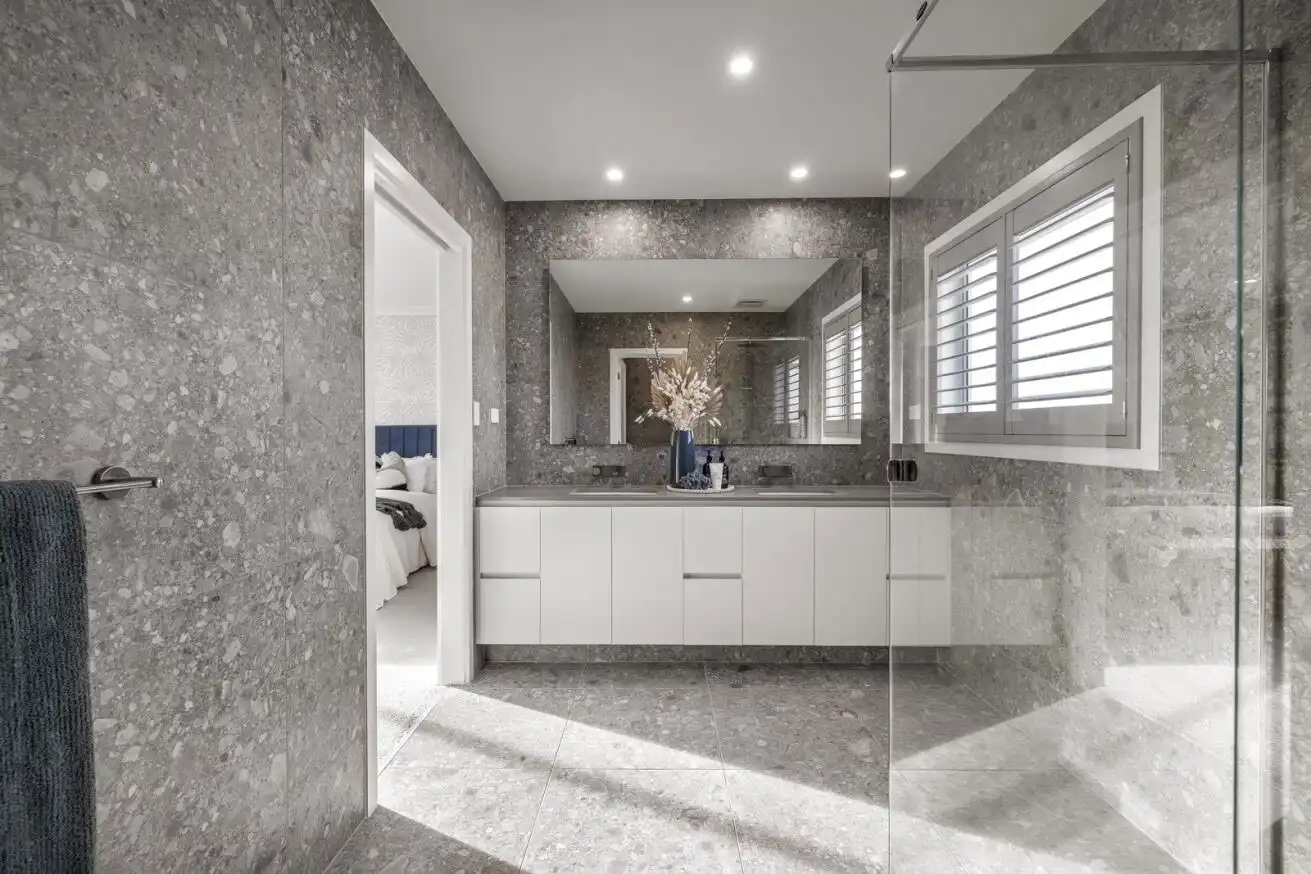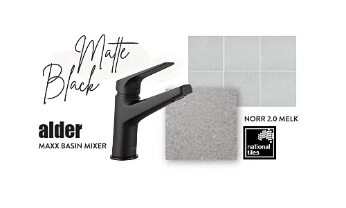 Try matte black with the Norr 2.0 Melk from National Tiles. The fragmented pebbles in nature’s terrazzo are grounded by the strong and eye-catching matte black.