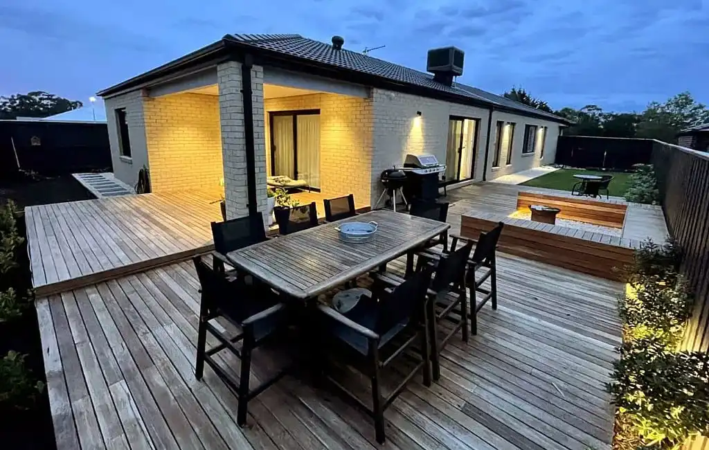 When Brittany and Shane were looking to get their foot in the property market, they quickly found themselves at a crossroads. As they scrolled through listings of existing homes up for sale, they realised that buying in Melbourne was going to be a little too far out of reach for their first home.They then toyed with the idea of moving further inland, but ultimately the draw of being by the beach won; and the fact that moving to the coast meant more backyard space for their dog, Tickles, was just an added bonus.Once they’d decided on location, they faced the next big decision of whether to buy an existing property or build new. In the end, it was the clear vision of what they wanted in a home that pushed them closer to building.Plus, with Shane being an electrician by trade and owning his own business, Bellside Electrical Services, they could put his expertise to work with a range of different feature lights that add ambience and warmth throughout the inside and outside of the home.