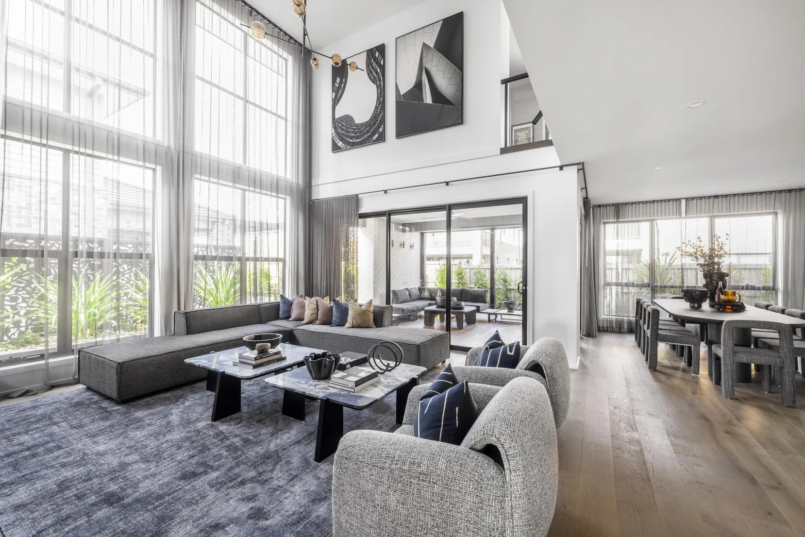 Melds family unity with privacy, featuring luxury and space.