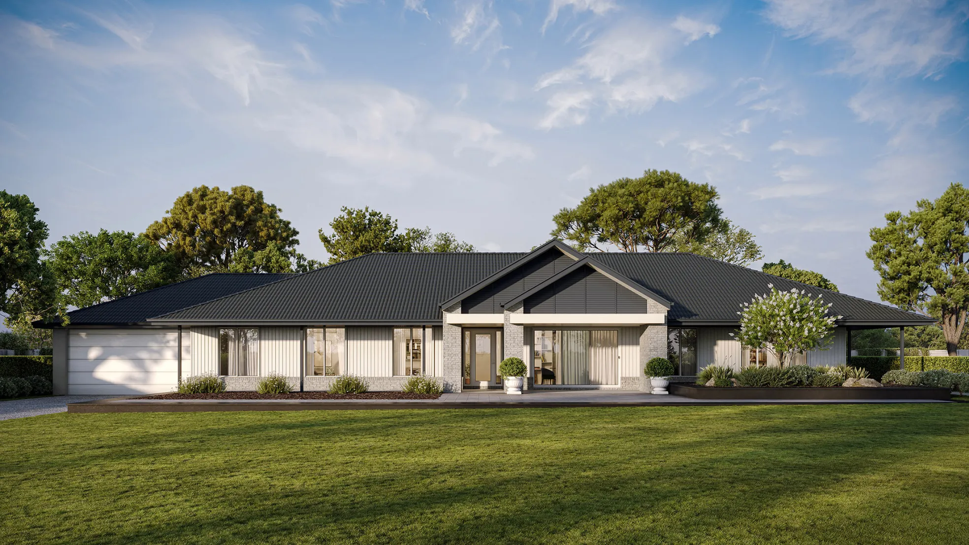 Brookleigh 42 is an expansive single-storey home design offering unparalleled luxury across 5 bedrooms and 2 bathrooms. With two living areas and a 2-car garage, it caters to the demands of modern living while ensuring ample space for privacy and entertainment. Perfect for larger families or those valuing expansive living, this house plan embodies contemporary elegance, easily fitting on wider blocks.